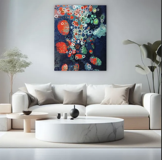 In diesem Kunstwerk verschmelzen Acryl, Öl und Indische Tinte zu einer atemberaubenden Herbstkomposition. Die warmen Farbtöne von Rot, Orange und Gold fangen die Essenz des Herbstes ein und schaffen eine Atmosphäre von Wärme und Nostalgie.